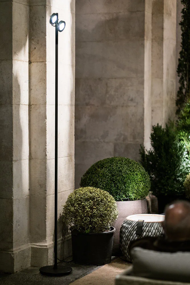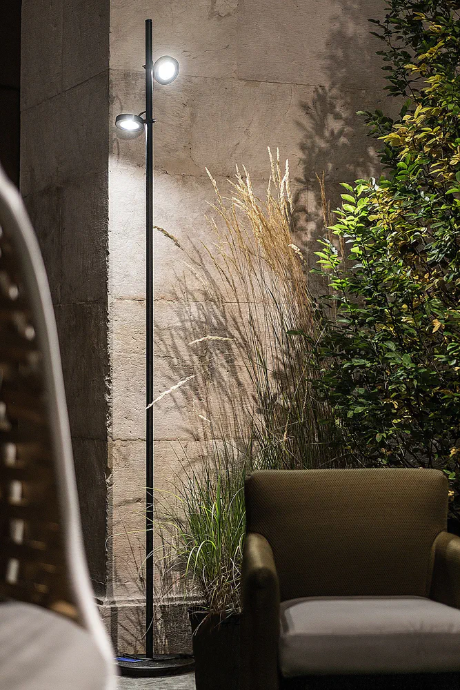 Illuminate your outdoor spaces with the sophisticated Frog adjustable aluminum floor lamp. Designed for elegance and durability, this lamp features advanced anodizing treatment and a protective coating against atmospheric agents and UV rays. With its unique spiral design for optimal heat dissipation and flexible positioning on all axes, Frog ensures excellent luminous efficiency in a compact body. Ideal for various settings, the Frog lamp combines functionality and style, making it a perfect addition to any outdoor ambiance.