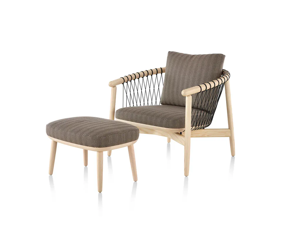 Crosshatch Wooden Fabric Armchair Herman Miller