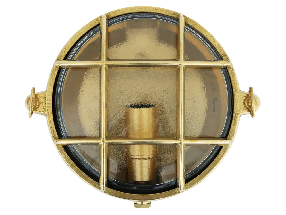 Illuminate your outdoor spaces with the Ergo Marine Round Small Bulkhead. This exquisite handmade ceiling light features a stylish brass and glass design, ensuring durability and elegance. With a maximum wattage of 40w and an IP54 rating, it promises reliable performance even in challenging weather. Its versatile E27 ceramic lampholder makes it compatible with a variety of bulbs, enhancing your décor with both function and flair. Perfect for those seeking a blend of contemporary and vintage styles, this unique light fixture is sure to enrich your living environment.