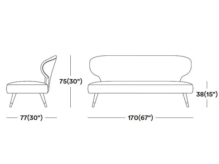 Elevate your space with the ELLE Fabric Small Sofa, a perfect blend of comfort and style. Its generous seating and elegant curvature make it an ideal choice for high-end hotels and boutique healthcare environments. Sturdy wooden legs with chic metal slipper cups add a touch of sophistication, while a variety of upholstery options allow for personalization. Transform your room with this exquisite sofa, designed for both luxury and functionality.