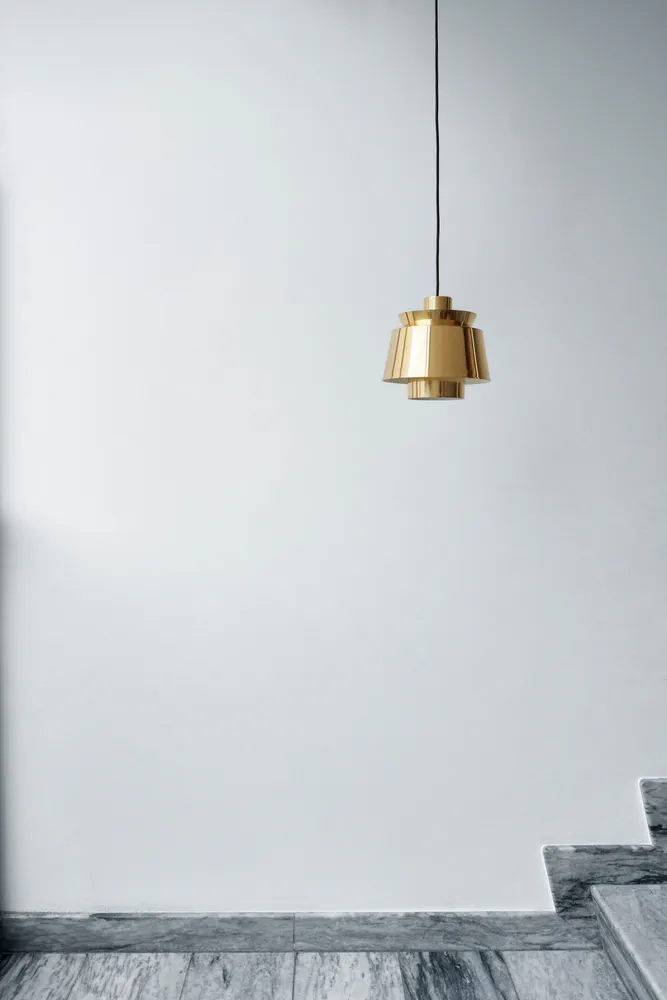 Illuminate your space with the stunning Utzon JU1 Metal Pendant Lamp designed by Pritzker Prize-winning architect Jørn Utzon. With its distinct collared shape and sharp industrial lines, this pendant is a perfect blend of style and functionality. Available in brass, white, and a split-color option, its elegant design complements any décor. Perfect for indoor settings, the Utzon JU1 offers versatility and aesthetic appeal while ensuring energy efficiency. Crafted from premium lacquered metal and featuring a generous 4-meter fabric cord, it's perfect for highlighting your favorite spaces. Transform your environment with this timeless piece that resonates with stunning craftsmanship.