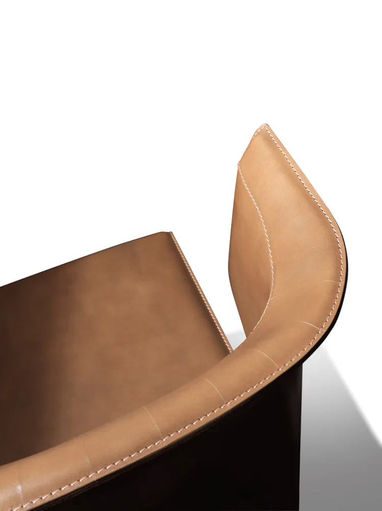 Experience the luxurious comfort of the Anastasia upholstered tanned leather armchair. This stunning piece features exquisitely crafted 3 mm thick leather, harmoniously combined with carved pinstripe pattern inserts. Its internal metal structure ensures durability while maintaining a lightweight feel. Perfect for enhancing your living space, the Anastasia chair blends style and comfort seamlessly, representing the pinnacle of Italian craftsmanship. Elevate your home with this elegant armchair that speaks to sophistication and modern design.