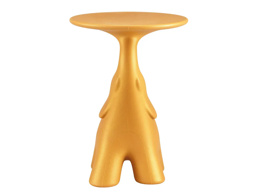 Elevate your space with the vibrant Pako coffee table, designed by Stefano Giovannoni. This stylish and multifunctional side table features a unique long trunk supporting a circular top, perfect for displaying your favorite items. Crafted from recyclable polyethylene, it's available in multiple colors and gold metal finishing, ensuring it complements any decor. Light yet sturdy, the Pako table adds a touch of contemporary elegance to your living room, making it an ideal focal point for entertaining or casual gatherings.