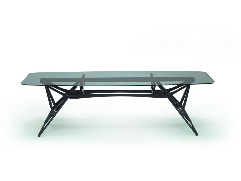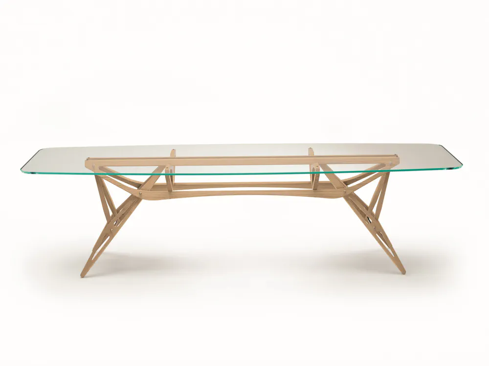 Introducing the REALE CM 2320, a stunning crystal table that combines elegance with functionality. Crafted with a solid natural or varnished oak frame, this table features an exquisite extra clear or smoky grey plate glass top with inclined cut edges. Perfect for modern living, it is available in various sizes to fit your space. Elevate your dining experience with this unique piece that showcases both craftsmanship and design excellence.
