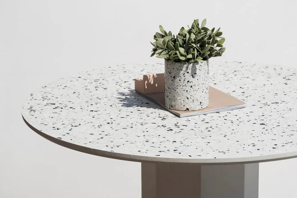 The GONG Round Concrete Dining Table is a stunning centerpiece for any dining area. With its robust power-coated steel base and stylish terrazzo top, this table combines durability with contemporary elegance. Available in sleek black or pristine white, it complements various décor styles while providing ample space for dining and gatherings. Weighing 85kg, it promises stability and lasting quality. Transform your dining experience with GONG and embrace modern design that stands out.