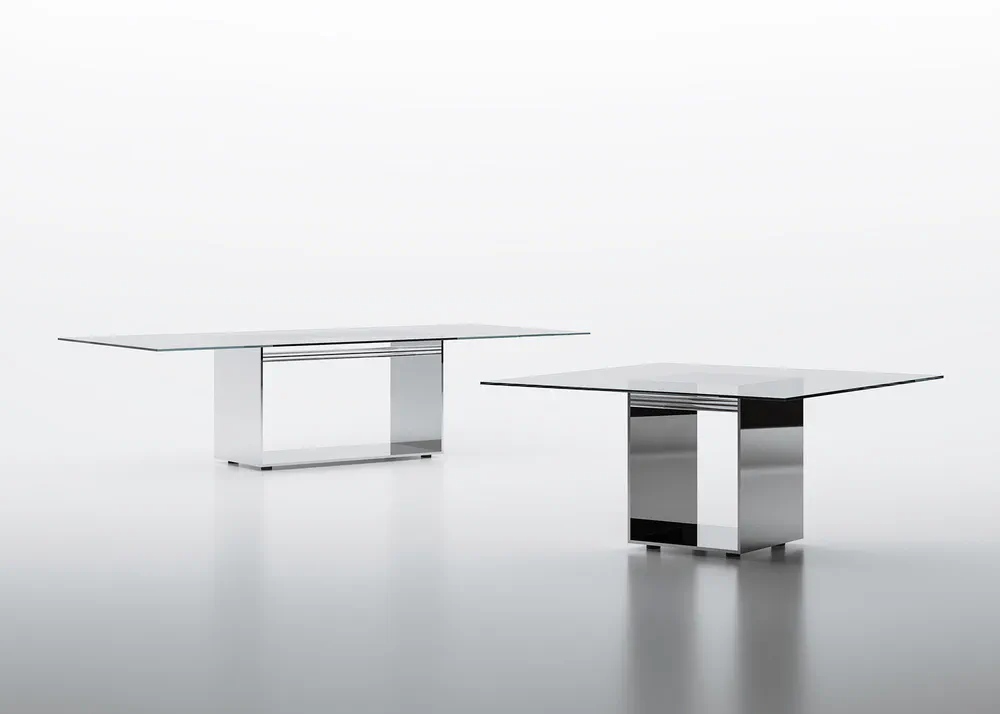 Glimm Square Glass and Stainless Steel Table ACERBIS
