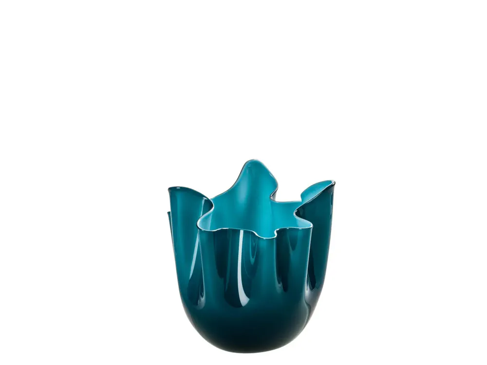 The Fazzoletto Opalino Bicolore is a stunning handmade blown glass vase that showcases the unique opal glass technique with an array of eye-catching colors. Crafted by renowned designer Fulvio Bianconi, its shape reminiscent of flowing skirts adds a touch of artistic elegance to any space. Each piece is one-of-a-kind, ensuring your décor is truly unique. This exquisite vase is not only a beautiful addition to your home but also a work of art admired in exhibits such as MoMA. Perfect for enhancing your interior style, the Fazzoletto Opalino is a marvelous conversation starter.