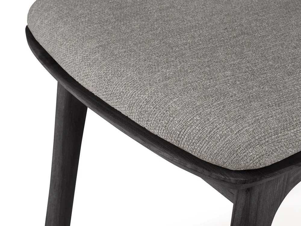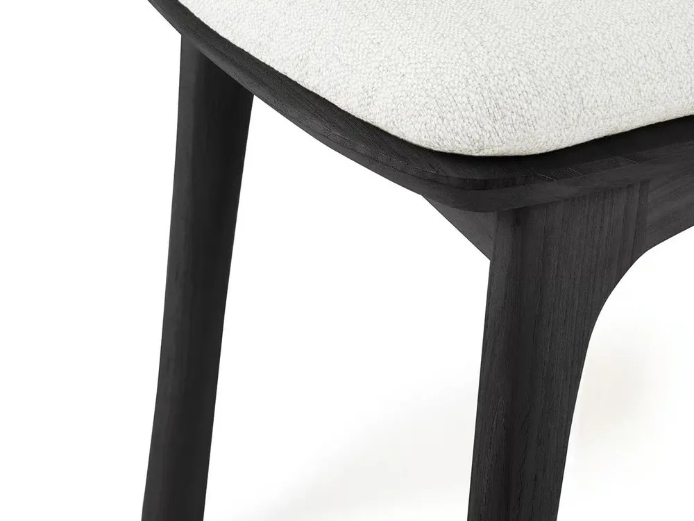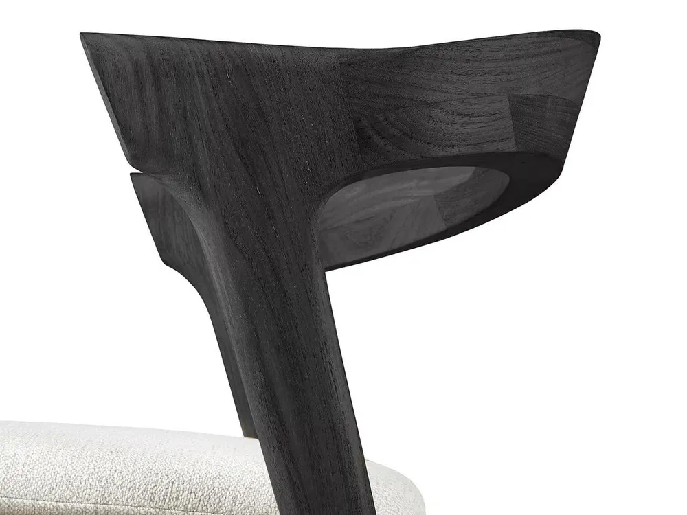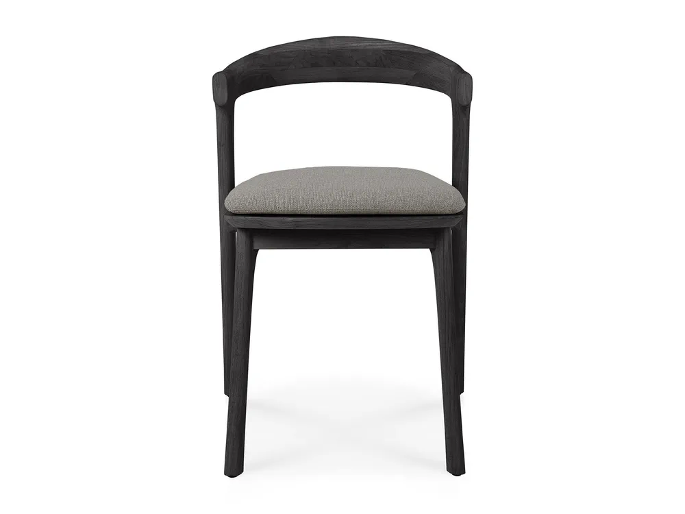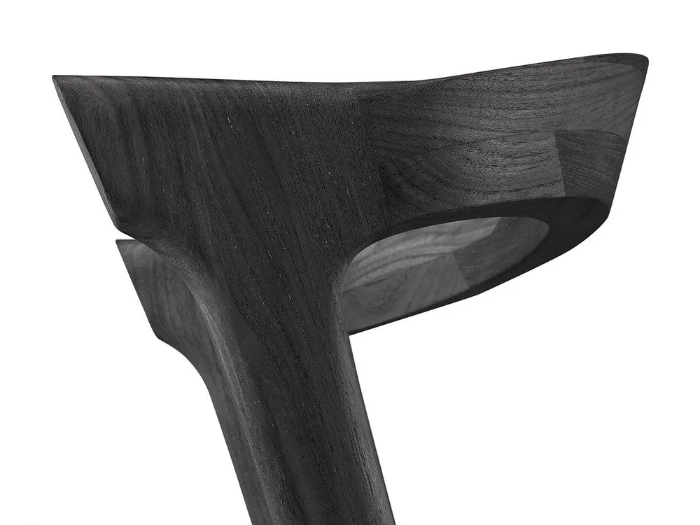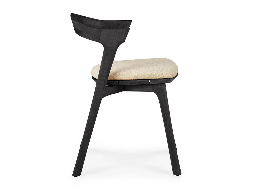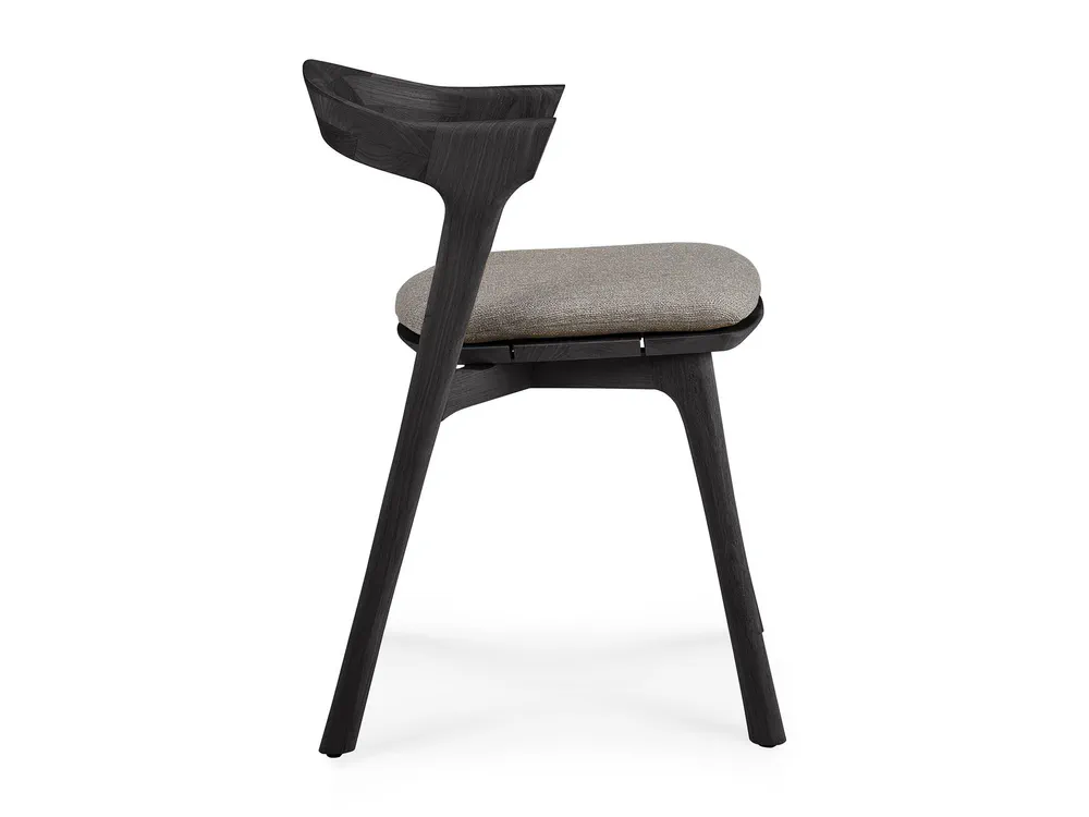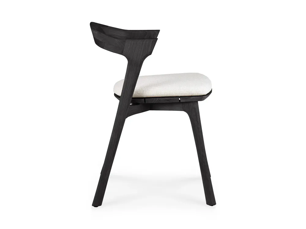 Elevate your outdoor dining experience with the TEAK BOK BLACK chair, designed by Alain Van Havre. This stunning teak chair features an open back and a luxurious, integrated cushion for maximum comfort and style. Crafted from solid, black tainted, brushed teak with a protective varnish finish, it's not only beautiful but also durable. The quick-dry foam and 100% polyprop fabric ensure it stands up to the elements, making it ideal for outdoor use. Enhance your garden or patio with this versatile piece that can be ordered separately or as part of a complete set.