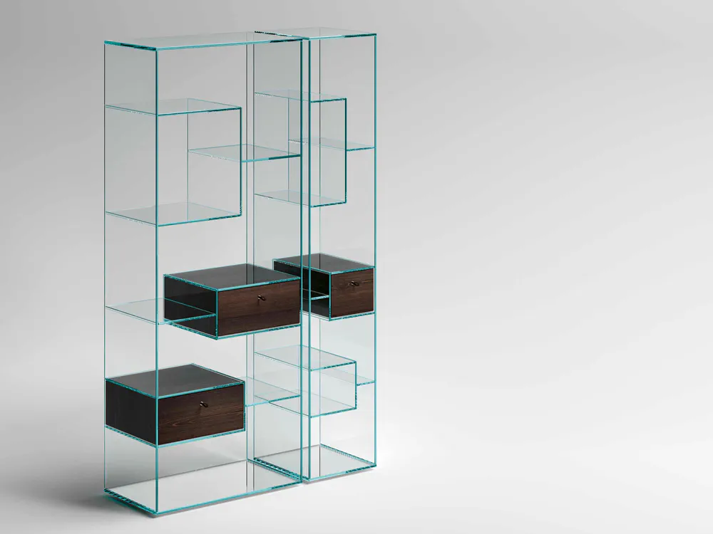 Open Modular Tempered Glass Bookcase Tonelli Design