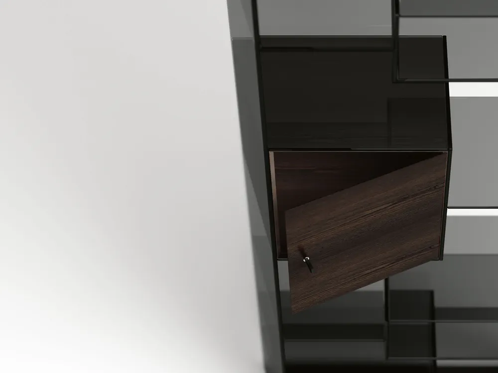 The Liber Open Modular Tempered Glass Bookcase redefines versatility with its sleek design and innovative features. Featuring inclined sides for curvilinear or linear compositions, this bookcase functions perfectly as a room divider while enhancing your space. Crafted from extra clear or smoked glass with a mirrored base and adjustable feet, it pairs beautifully with a wooden storage unit in Siberian Ash, Eucalipto, or natural oak. Its unique hinge door and soft closure add elegance and functionality. Perfect for any modern home, this bookcase offers limitless possibilities for organization and style.