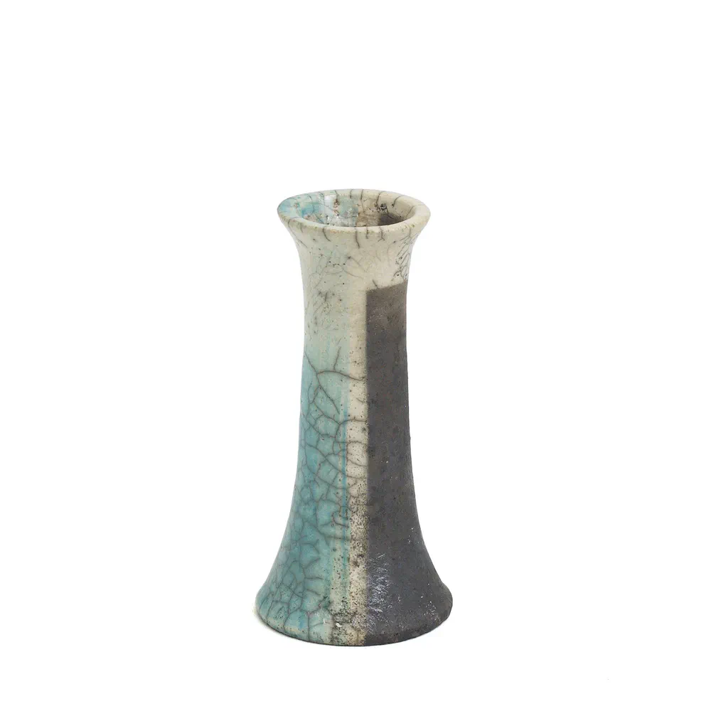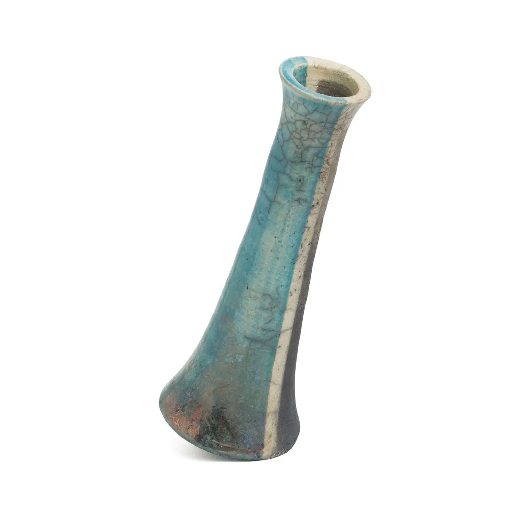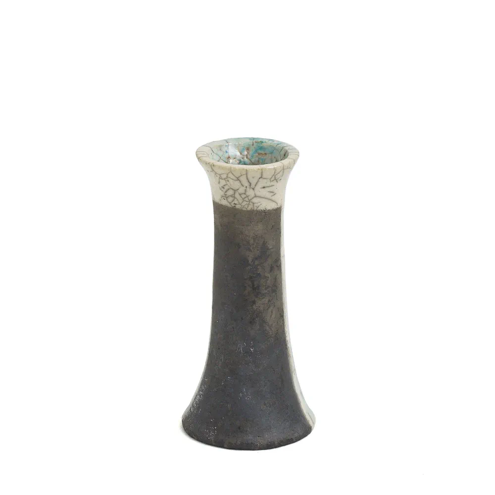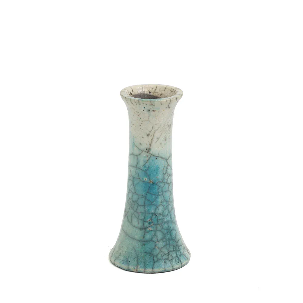 Experience the unique beauty of the Stelo Wake candleholders, a striking set of 2 crafted in Raku ceramic with a mesmerizing turquoise crackle finish. These candleholders are not only functional but serve as a captivating decorative piece that speaks to the theme of impermanence when illuminated. Perfect for enhancing the ambiance in any setting, they bring together contemporary design and artisanal craftsmanship. Illuminate your space with these exquisite candleholders that are sure to be the focal point of your decor.
