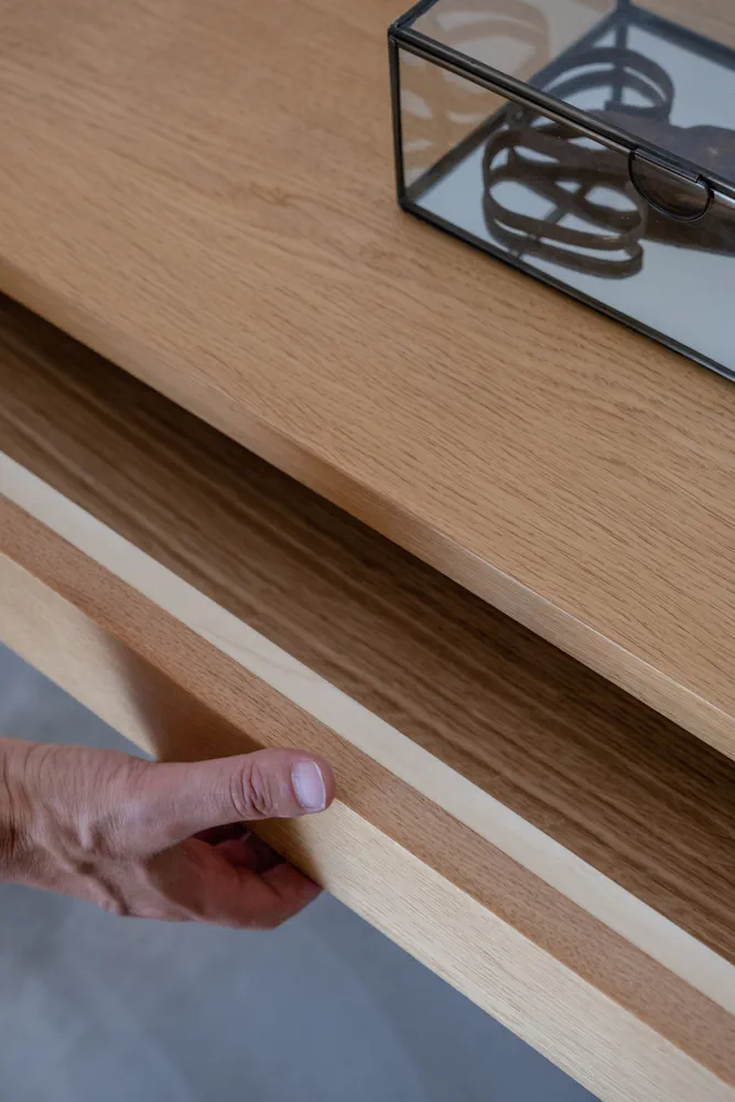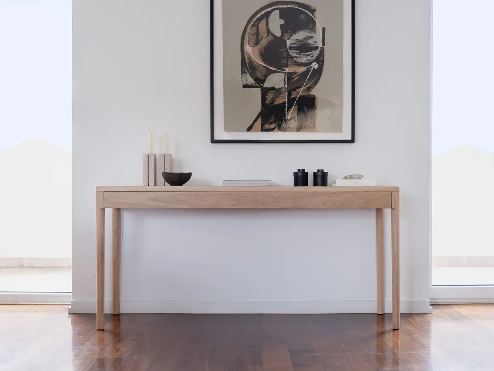 Discover the Front console table, a stunning blend of minimalism and functionality. This versatile piece fits seamlessly into various styles, enhancing your space's aesthetic while providing practical storage with its drawers. Choose from three sizes and wood options, including oak and walnut, to perfectly match your decor. The clean lines and durable construction make it a timeless addition to your home. Elevate your interior with this exquisite console table designed to impress and serve.