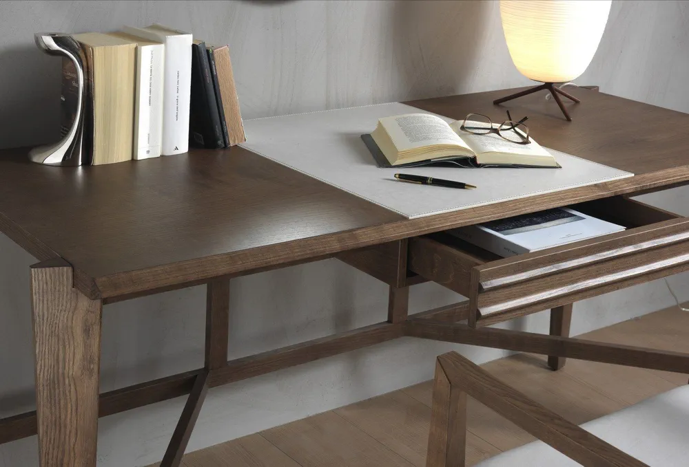 Discover the ATHOS Writing Desk, crafted from solid ash for durability and style. This desk features a pull-out drawer and an elegant leather or eco-leather insert, making it perfect for any contemporary workspace. Enhance your productivity with a beautiful blend of functionality and aesthetics that complements your home or office decor. Experience the perfect fusion of craftsmanship and design with ATHOS, a desk that redefines what you expect from your workspace.