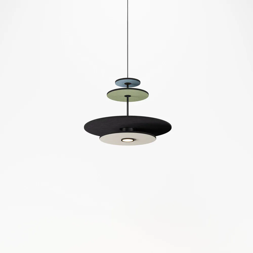Discover the SLIZES LED Acoustic Pendant Lamp, a perfect blend of lighting and sound absorption. With its innovative design, this lamp not only illuminates your space but enhances the acoustic environment, making it ideal for offices and homes alike. Constructed from sustainable materials, it features a beautiful two-toned finish, ensuring both aesthetic appeal and functionality. Available in multiple diameters and slice designs, this pendant can be customized to suit your style while providing an impressive luminous flux. Upgrade your interior with a lighting solution that promotes better sound quality!