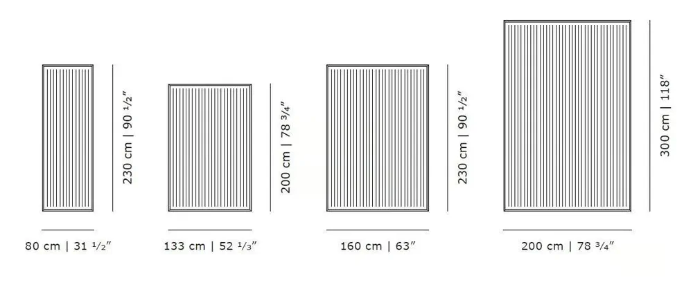 Dimensions | 200 x 300 cm, 160 x 230 cm, 133 x 200 cm, 80 x 230 cm |