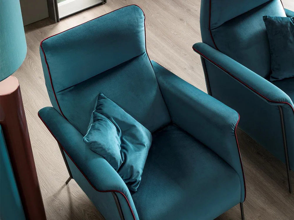 The Celine Velvet Armchair offers a unique blend of style and comfort, featuring a solid wood structure and a large padded seat that invites relaxation. Its retro design, complemented by aesthetic threaded details, adds character to any space. The armchair's soft velvet fabric provides unparalleled sensory delight, making it perfect for thoughtful reading or simply unwinding. With its elegant curves and edge-free design, this armchair transcends ordinary furniture to become a statement piece in your home.