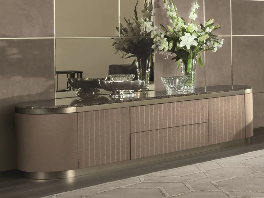 Introducing the Gordon Cashmere Sideboard, a luxurious addition to your living room that combines timeless elegance with exceptional craftsmanship. Upholstered in premium cashmere from Loro Piana, this stunning piece features exquisite marble top finishes and intricate diamond or sequence detailing. With a spacious internal layout and options for a stylish luminaire, the Gordon is designed to be both functional and striking. Elevate your home decor with this unique sideboard, perfect for those who appreciate fine design and superior materials, all handcrafted in Italy.