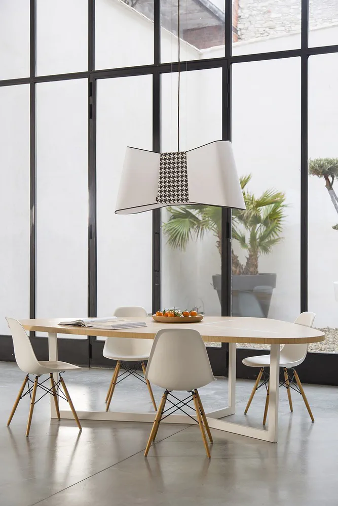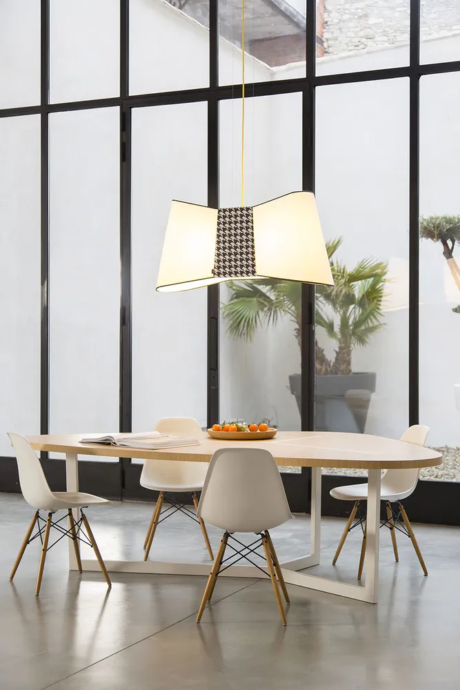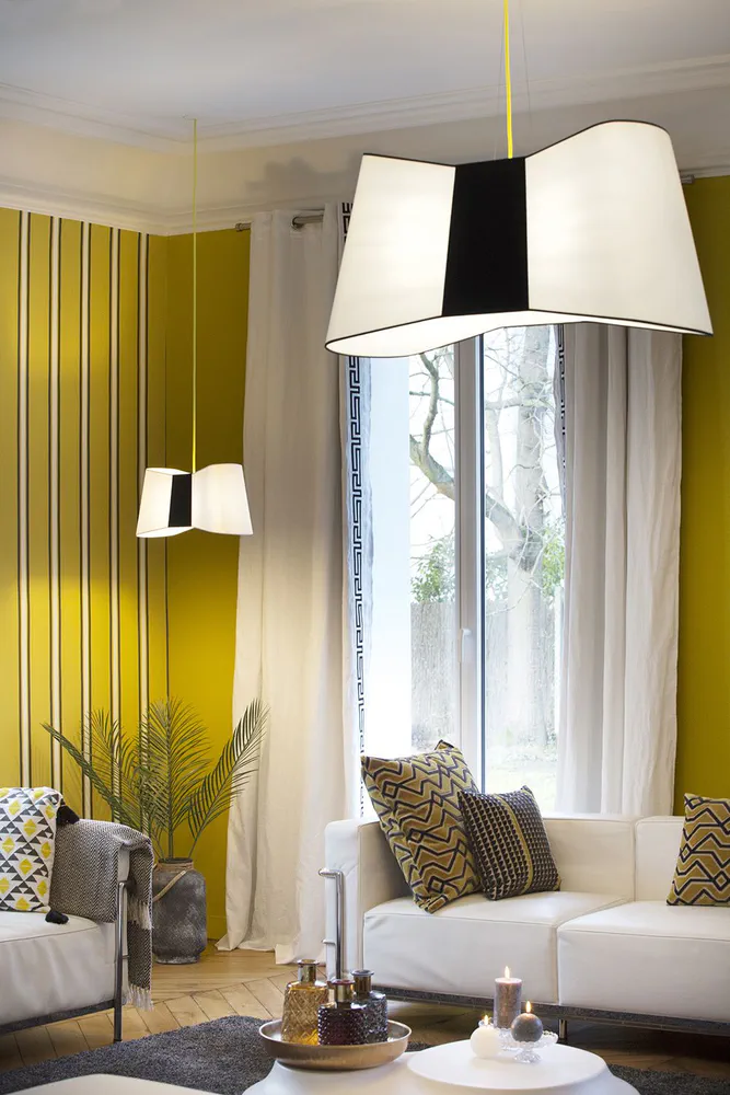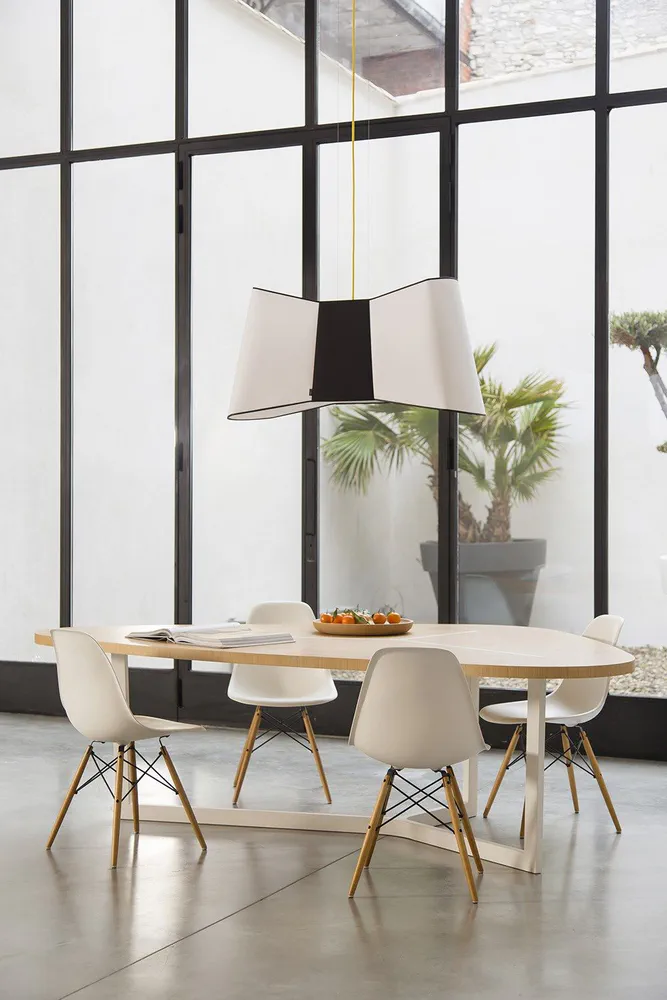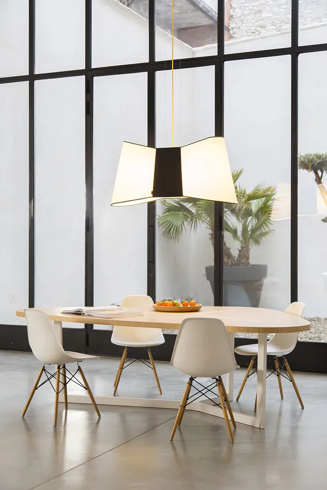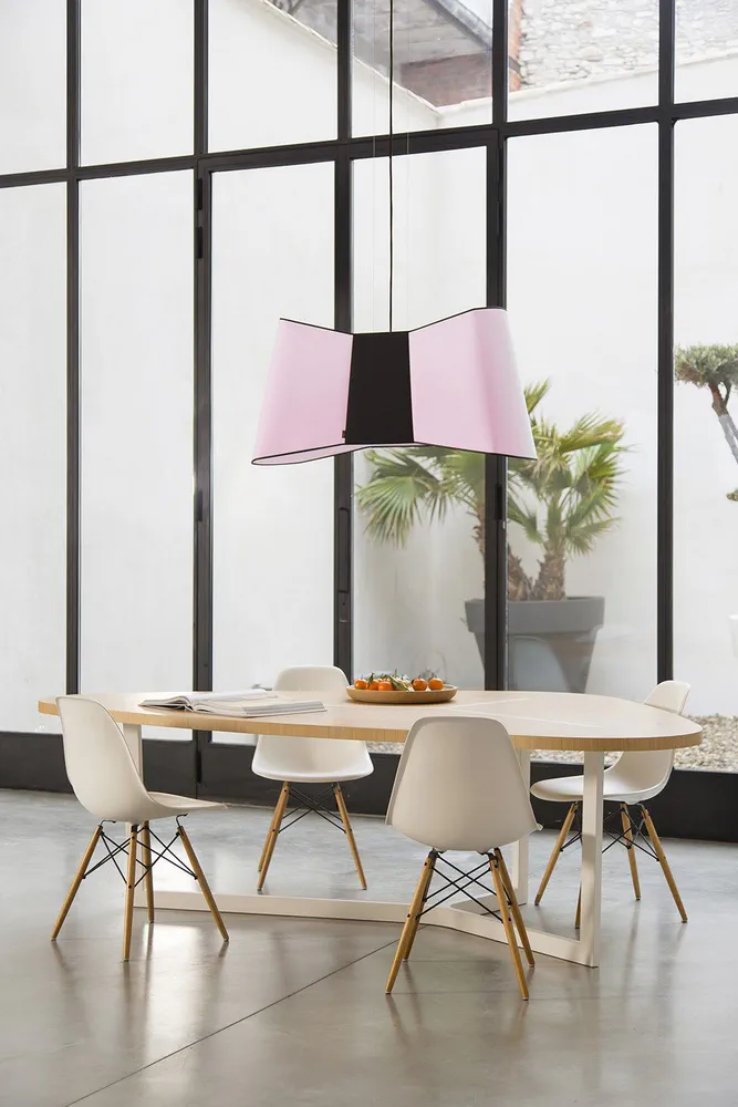 Illuminate your space with the Couture XXL LED Pendant Lamp, a stunning fusion of fashion and design. This generously sized lamp features a chic bow-tie silhouette, adding an elegant and quirky touch to any room. Designed by Emmanuelle Legavre, it showcases a distinctive aesthetic that blurs the boundaries between style and functionality. With its vibrant colors and sophisticated black rim, this lamp enhances both residential and commercial environments. Perfect for those seeking a statement piece, the Couture XXL infuses personality and flair into your lighting collection.