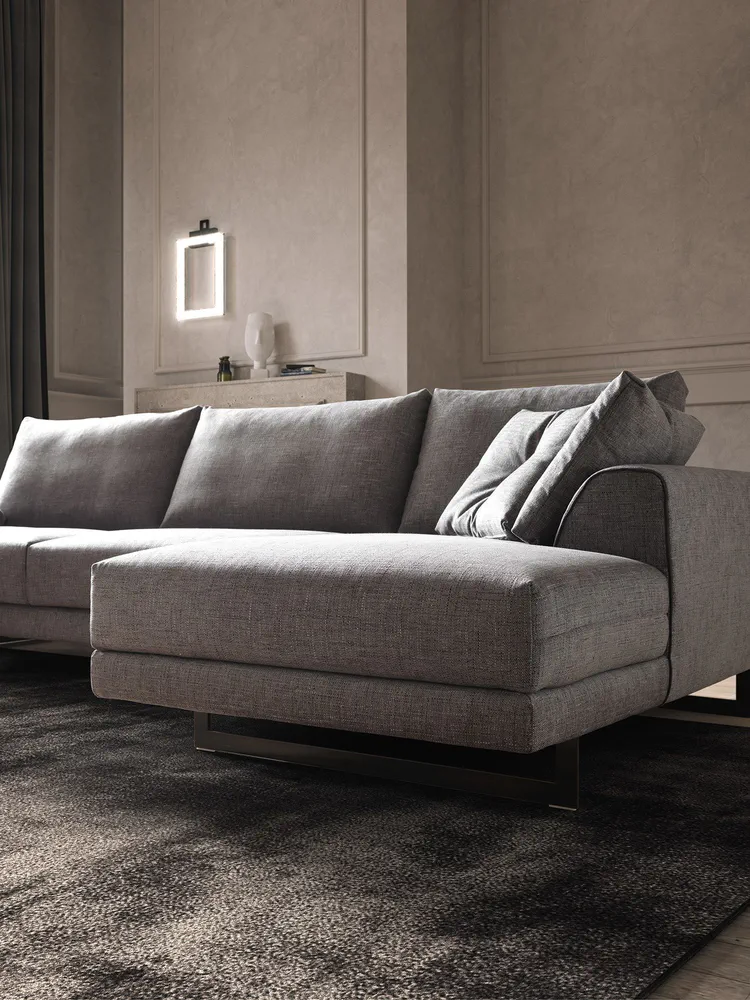 Introducing the Ernest New Fabric Sofa with Chaise Longue, designed to blend comfort and elegance seamlessly. This stylish sofa features gently curved armrests and cozy goose down cushions, promising a delightful lounging experience. Its lightweight structure ensures both durability and a refined balance, making it perfect for residential or commercial use. Elevate your living space or waiting room with contemporary flair. The Ernest New sofa stands out for its unique design and versatile functionality, making it a valuable addition to any decor.
