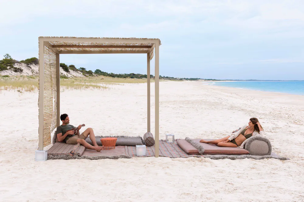 Experience the elegance of the Garden Layers Diagonal Outdoor Rug, designed by Patricia Urquiola. This exquisite rug combines high-tech, weather-resistant materials with a refined design, perfect for enhancing your outdoor spaces. Available in multiple sizes, it features an elegant solid-color style that complements various patio arrangements. Designed for comfort, it includes rapid-drying foam for durability against the elements. Transform your garden or terrace into an oasis of relaxation and style with this unique outdoor rug that invites leisure and aesthetic appeal.