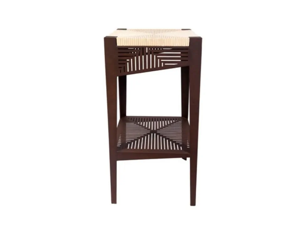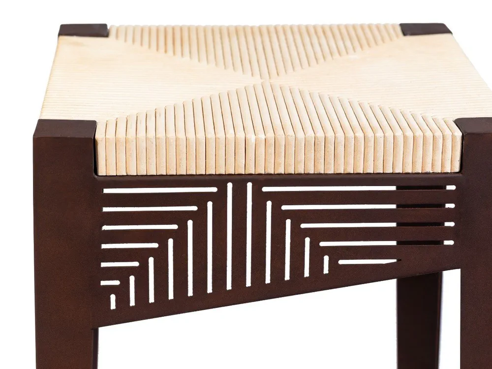 The Cortese high stool blends corten steel and Lecce stone, creating a unique seating option for modern spaces. Its innovative design resembles traditional woolen cloths, adding an artistic touch to your bar area. With a convenient footrest and lower shelf for personal items, this stool is perfect for socializing with friends. Enhance your decor by pairing it with compatible tables and high tabletops. Elevate your bar experience with the Cortese stool's contemporary charm and durability.