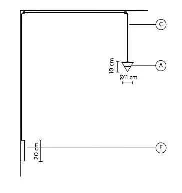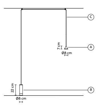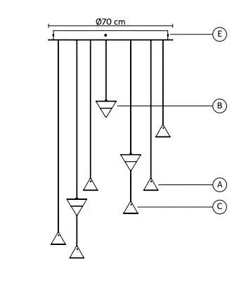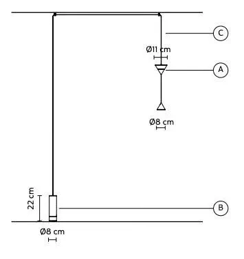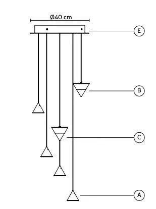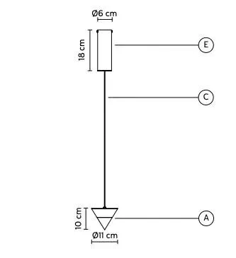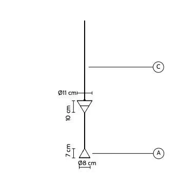 | Dimensioni | floor/ceiling cable length: 8 m, wall lamp cable length: 8 m, pendant cable length: 3 m, big cone diameter: 11 cm, height: 9.5 cm, small cone diameter: 7 cm, height: 6 cm |