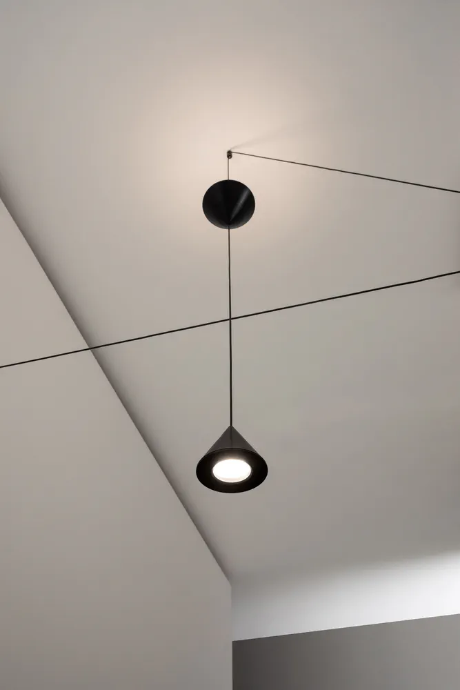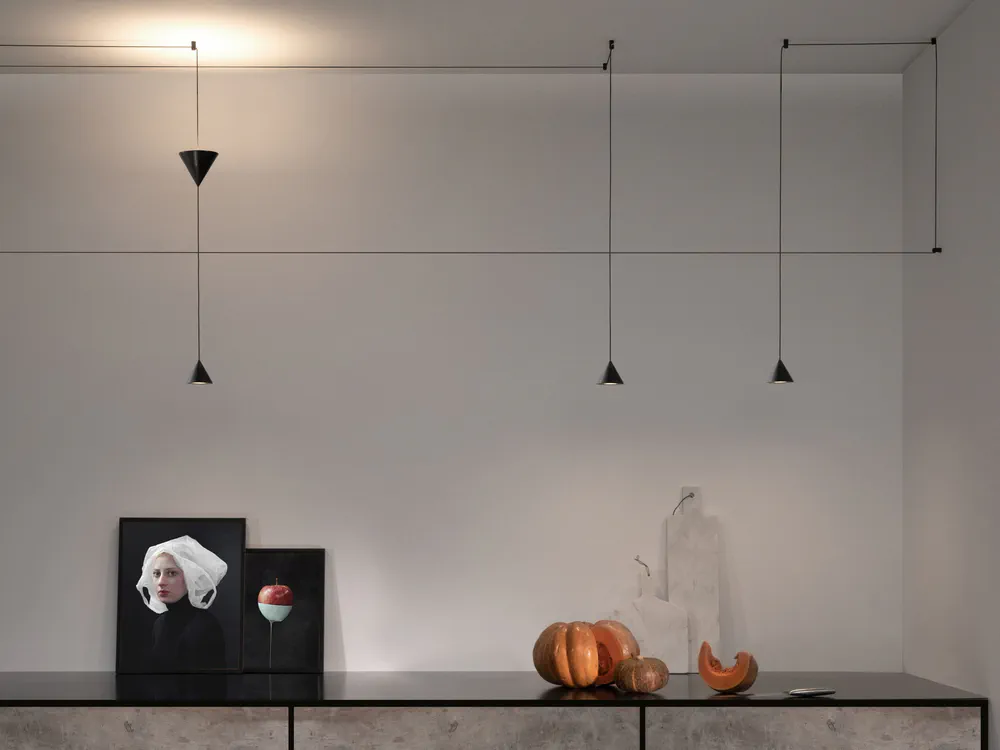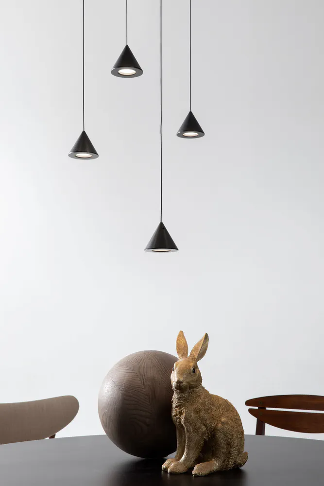 Illuminate your space with the Filomena LED pendant lamp, designed for versatility and style. Its unique aluminum cone structure allows for adjustable suspension heights, creating a stunning visual effect. The smaller cone emits downward light, while the larger cone beautifully uplights your room. Perfect for contemporary interiors, this lamp combines aesthetic appeal with functional lighting. The customizable setup and included black deviators make it easy to adapt to any space. Whether you’re enhancing a living room or dining area, the Filomena pendant lamp is the ultimate lighting solution.