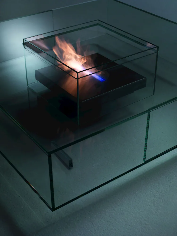 The SEASONS low square crystal coffee table, crafted from tempered extralight glass, redefines elegance. Its unique double top design allows for storage and display, featuring a watertight basin ideal for use as a vase, flower box, or even an aquarium. Available with an optional stainless steel burner fueled by bioethanol, this table combines functionality with striking aesthetics, making it the perfect centerpiece for any living space. Elevate your home decor with this versatile and stylish addition.