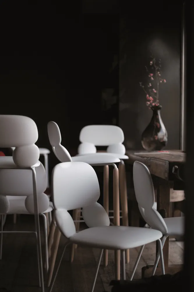 Discover the NUBE S Polyurethane Chair, designed by Roberto Paoli. With its soft and fire retardant Freeform polyurethane shell and a durable black or white painted metal frame, it offers unmatched comfort and style. This chair is wear-resistant, easy to clean, and ideal for both residential and commercial spaces. Part of the innovative Nube collection, it features a stunning design that merges functionality with aesthetics. Elevate your dining area or café with this versatile and modern seating solution that impresses both in comfort and design.