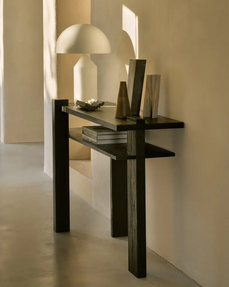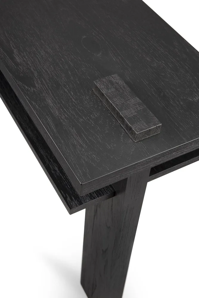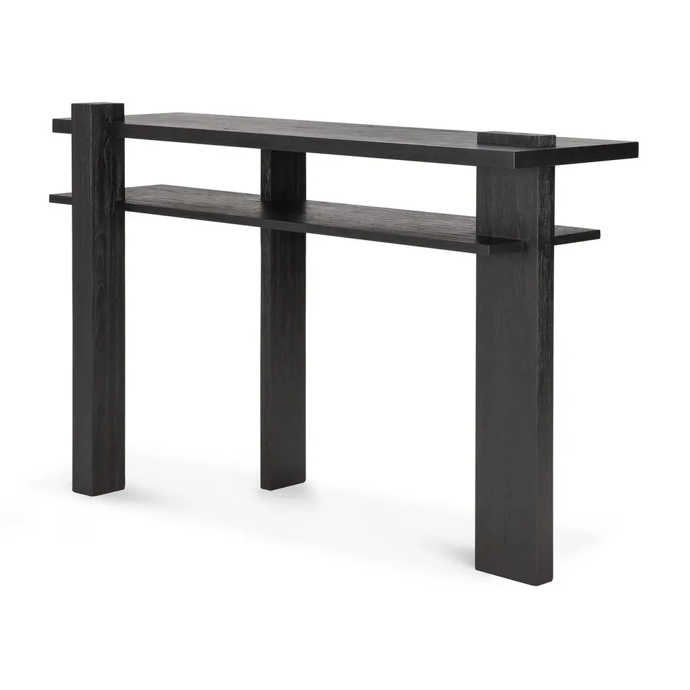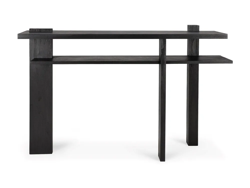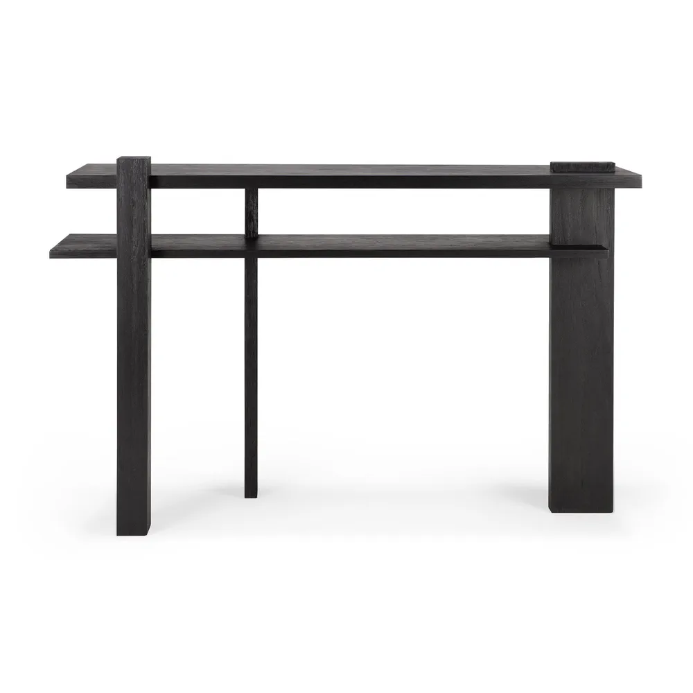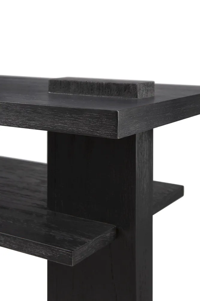 Elevate your space with the Abstract Rectangular Teak Console Table, inspired by the de Stijl architectural movement. This console combines contemporary design with functional elegance, featuring a striking black finish that adds sophistication to any room. Its unique proportions and angles create visual interest from every perspective, making it a centerpiece in your home. Perfect for display or storage, this console table is ideal for modern living rooms and entryways alike.