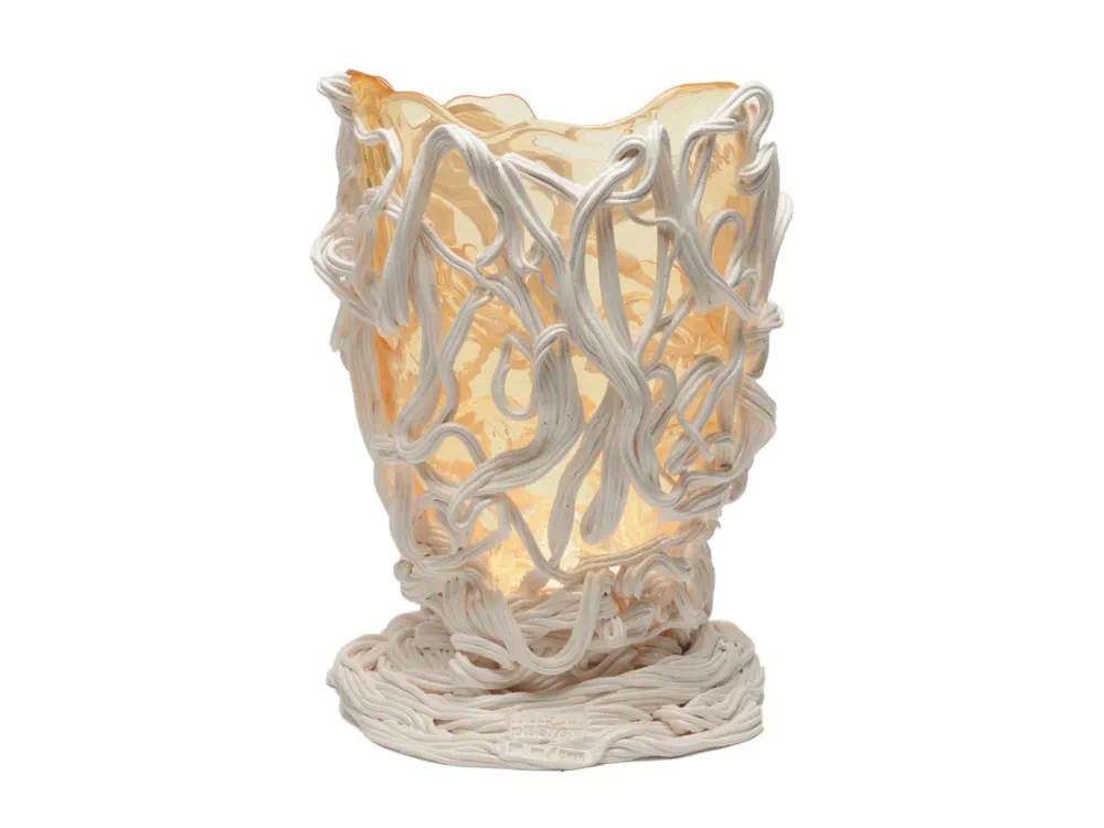 Discover the Spaghetti Special vase, a stunning piece crafted from soft resin designed by Gaetano Pesce. Part of the Fish Design collection, this contemporary vase features a clear and matt white finish, making it a unique addition to your decor. Each vase is hand-made, ensuring that no two pieces are identical. Slight variations in color and texture add to its charm, making it a perfect centerpiece for any room. Available in multiple sizes, it caters to diverse styling needs. Elevate your home decor with this artistic resin creation that blends beauty and functionality.