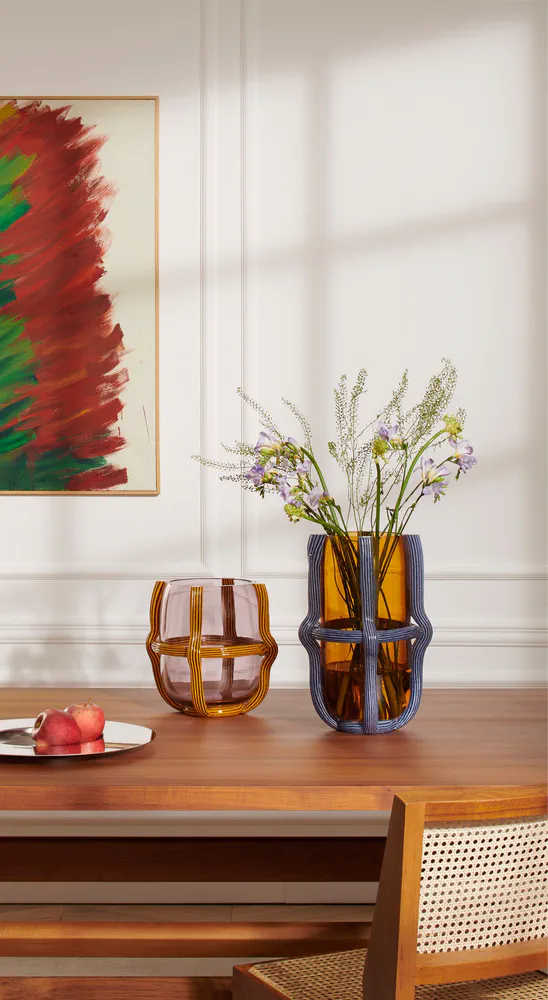 Discover the Sestiere, a stunning round blown glass vase that embodies the rich Venetian tradition. Each piece in this contemporary collection showcases exceptional craftsmanship with hand-applied ‘morisa’ cords, creating a beautifully imperfect aesthetic. The unique ‘rigadin’ motif adds a touch of elegance, making this vase a true work of art. Perfect for enhancing any decor, the Sestiere vase is not just a vessel; it's a statement piece that celebrates artisanal heritage and modern design. Elevate your living space with this one-of-a-kind treasure.