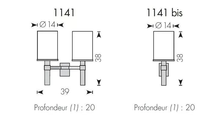 Introducing the 1141 Direct Light Wall Lamp, a stunning addition to your interior lighting. Featuring elegant frosted or enameled glass cylinders and classical mountings, this wall light seamlessly fits into any decor style. With options for one or two lighting arms, it provides versatility for any room. The 1141 model is compatible with all bulb types, ensuring brilliant illumination in your space. Achieve the perfect ambiance with this sophisticated wall lamp.