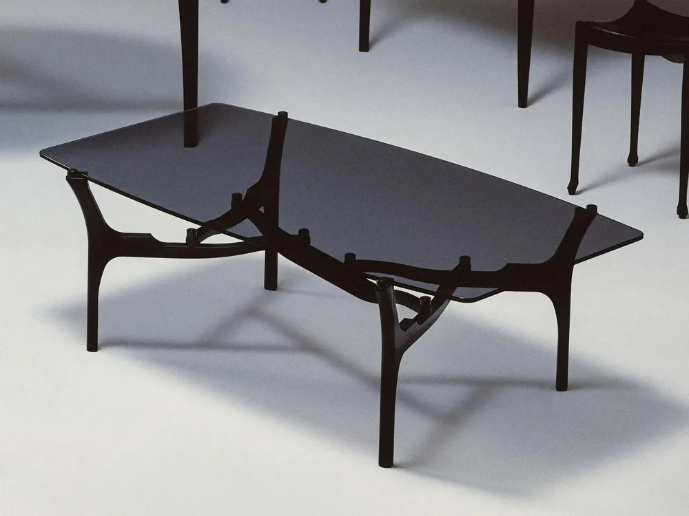 The Carlina rectangular coffee table is a stunning blend of biomorphic design and functional artistry. Featuring a striking combination of FSC-certified ash timber stained black and a 1 cm thick tempered smoked glass top, it embodies a contemporary aesthetic inspired by great design icons. Its unique, supportive structure mimics the elegant curves of nature, making it not just a table, but a conversation piece. Perfect for any living space, the Carlina seamlessly integrates beauty and stability, inviting you to relax and enjoy moments with family and friends.