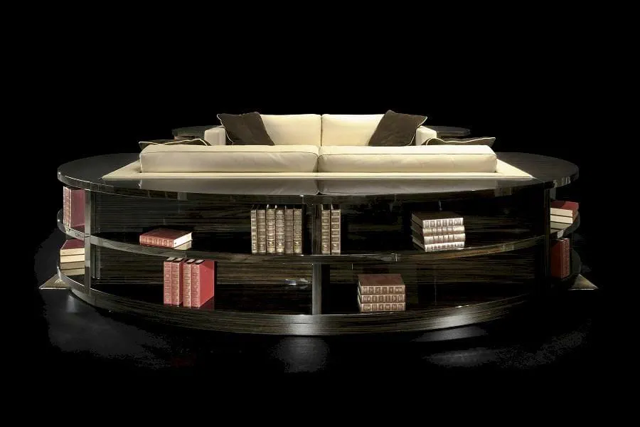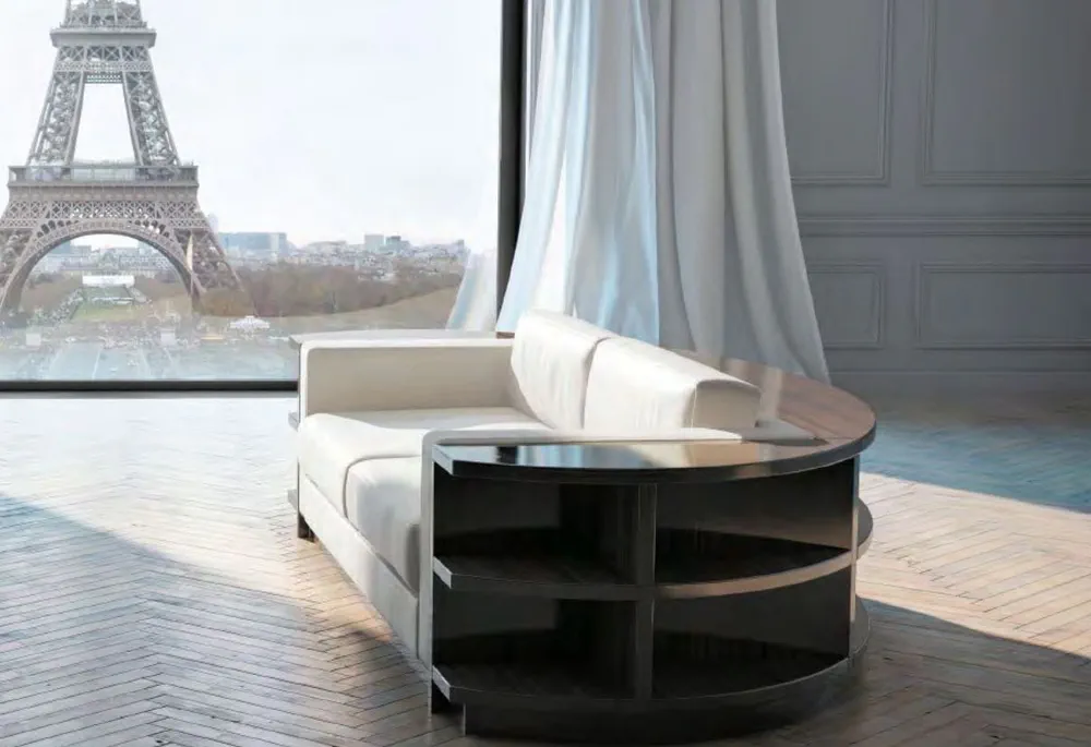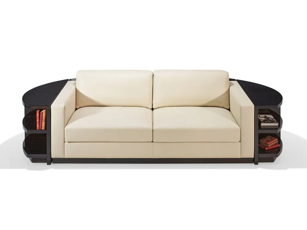 Experience the elegance of French design with the Rondo curved leather sofa. Crafted from full-grain leather, this sofa not only provides luxurious comfort but also features an integrated magazine rack for convenience. Its sophisticated silhouette and the warm touch of precious wood make it a standout piece in any contemporary living space. With generous dimensions, it ensures ample seating while adding a touch of aristocratic charm to your home decor. Elevate your interior with this unique blend of style and functionality.