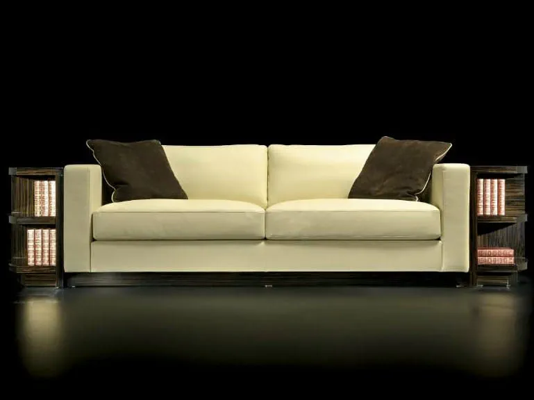 Curved Leather Sofa with Magazine Rack HUGUES CHEVALIER