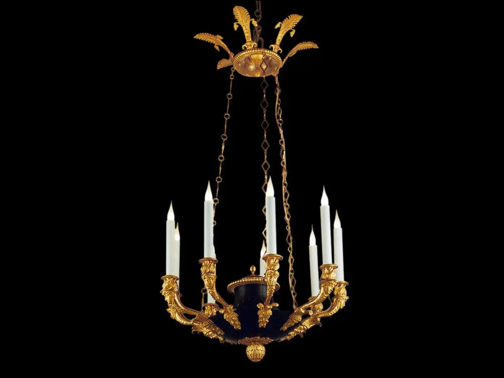 Elevate your space with the Empire Bronze Chandelier, beautifully crafted with 24K gilded bronze. This stunning chandelier features 9 lights that illuminate any room with elegance and sophistication. Ideal for those who appreciate classic style, this piece serves as a magnificent focal point, adding charm and warmth to your interior. Perfect for dining rooms, living areas, or grand entryways, the Empire Chandelier is a timeless investment in luxury lighting that will impress guests and enhance your home decor.