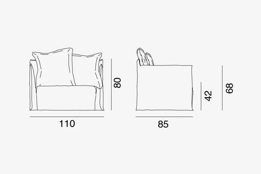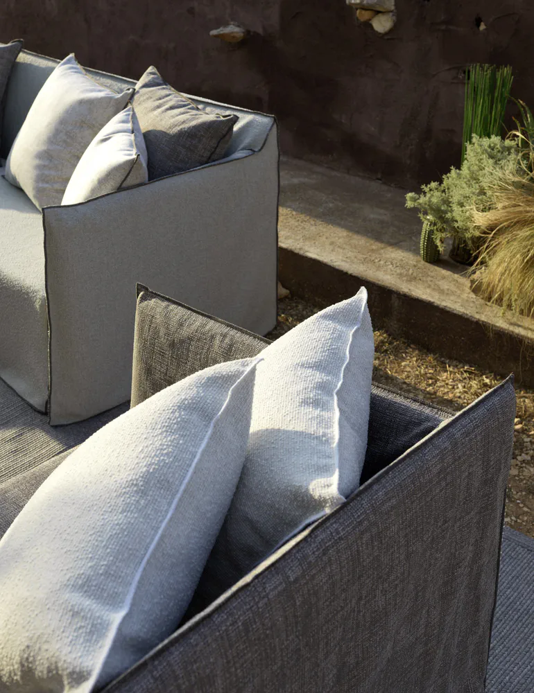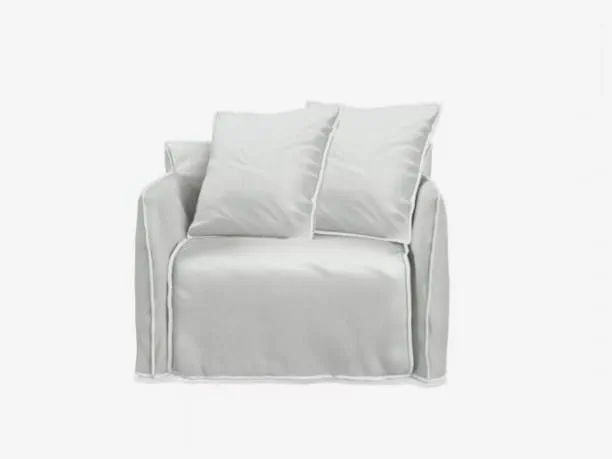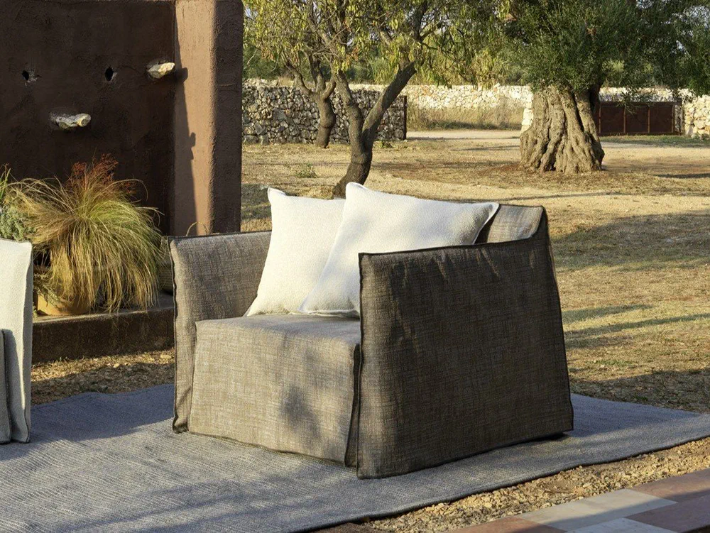 The Ghost Out 09 garden armchair combines comfort and style. With removable covers that can be easily changed, it offers versatility for any outdoor space. Designed to resist water and sunlight, this armchair maintains its shape and aesthetics over time. The geometric structure features loose cushions for added softness, making it an ideal choice for terraces, gardens, or poolside lounging. Crafted with expert craftsmanship and innovative materials, it's a standout piece in the Gervasoni Outdoor collection—perfect for enhancing your outdoor living experience.