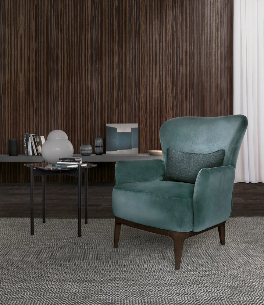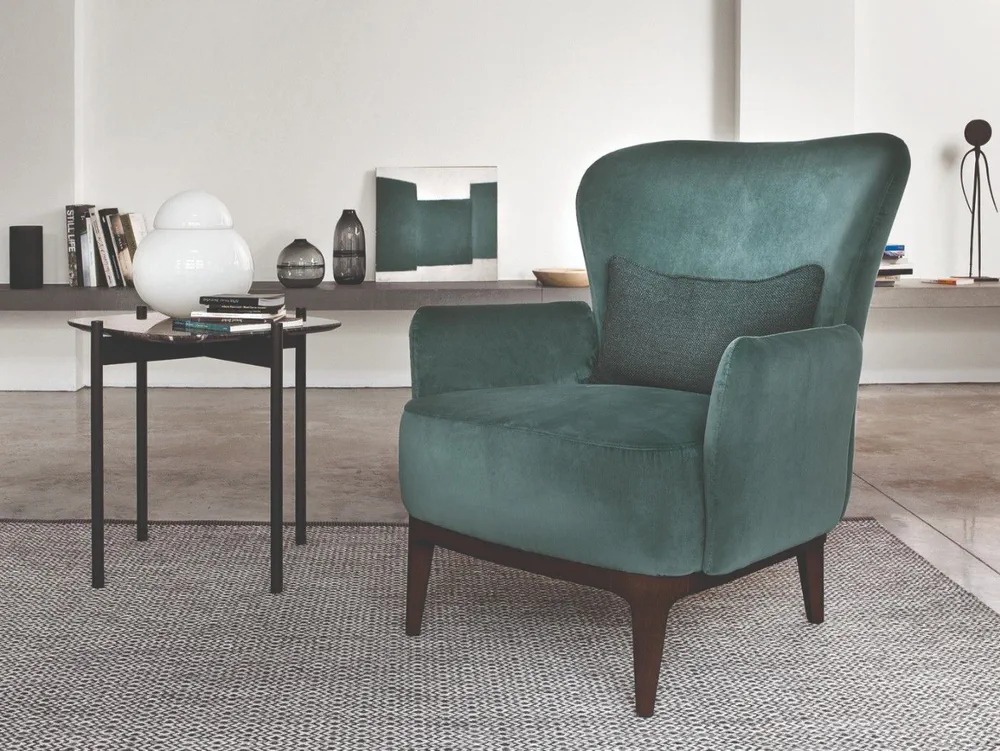 Experience relaxation with the Ginevra Armchair, a perfect blend of style and comfort. This elegant armchair comes complete with a matching footstool, featuring a sinuous design that reflects timeless beauty. Its authoritative form and beautiful proportions make it a best-seller for both residential and commercial spaces. Choose between a sturdy wood or sleek metal base to suit your decor. Elevate your living room or lounge area with this contemporary piece that promises comfort and sophistication.