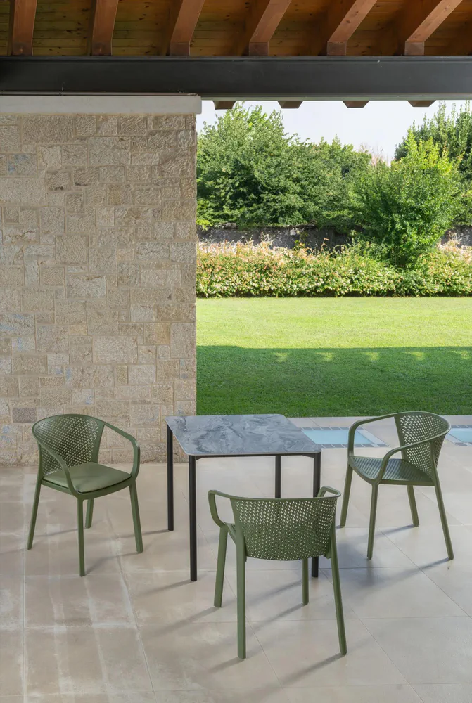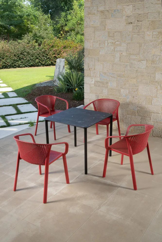 Discover the Mantix Compactop Garden Table, a unique blend of style and sturdiness. This table features a durable Compactop top with elegant rounded contours, making it a standout addition to your outdoor space. Its steel and aluminum frame ensures stability and resistance against the elements, providing lasting performance. Perfect for gatherings or serene afternoons, it elevates any garden or patio setting. Transform your outdoor area with this essential piece of furniture that marries beauty with practicality.