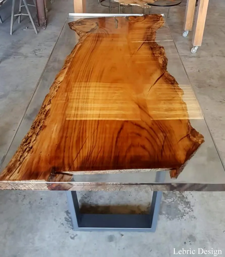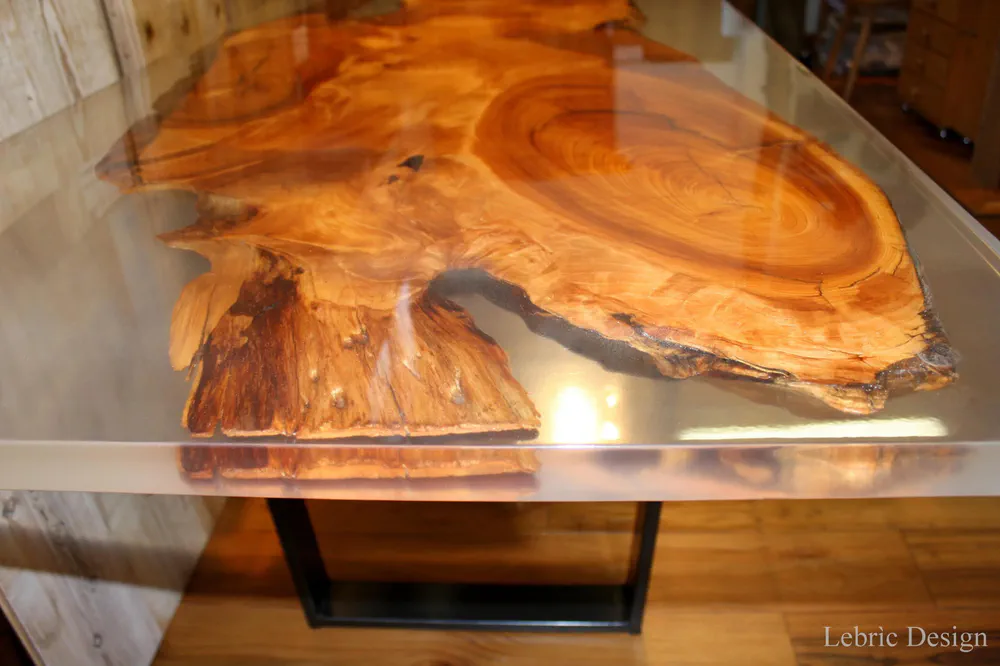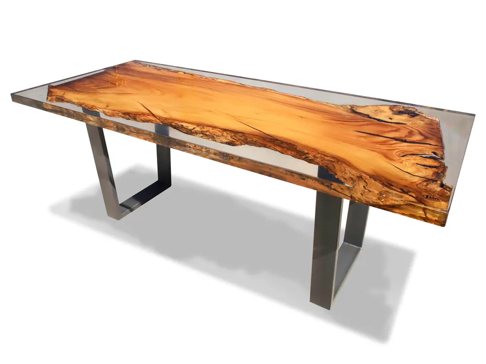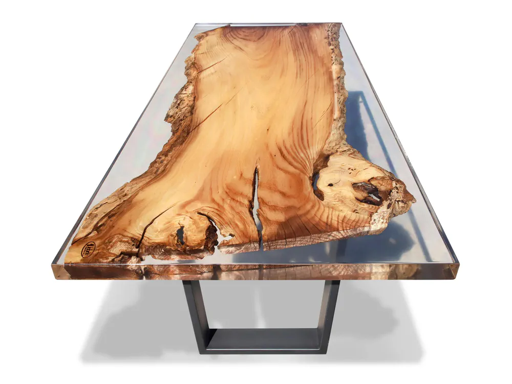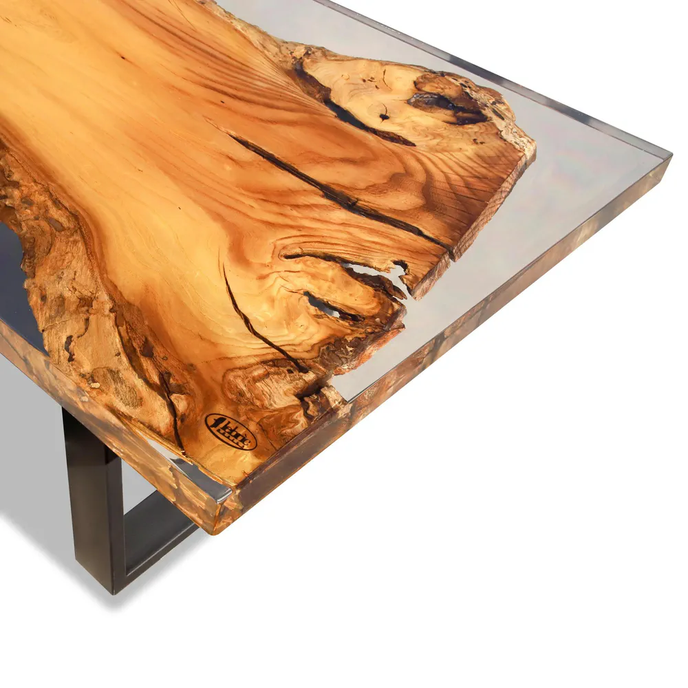 Introducing the UNIKO Resin Dining Table, a masterpiece from the Lebrìc Design collection. This table blends the natural beauty of wood with the elegance of transparent resin, creating a stunning centerpiece for your dining area. Each piece is custom-made to highlight various wood essences, ensuring that it fits perfectly with your style. Experience the fusion of craftsmanship and design that enriches your interior while providing functionality. Elevate your space with this unique dining table that exemplifies simplicity and sophistication.