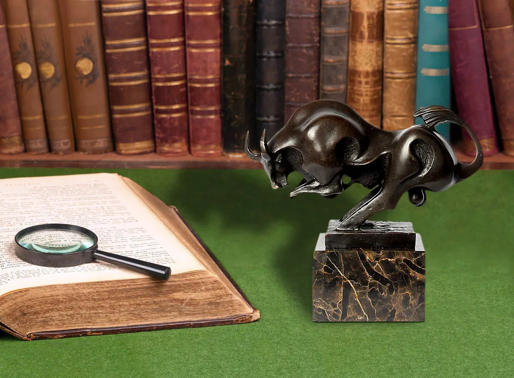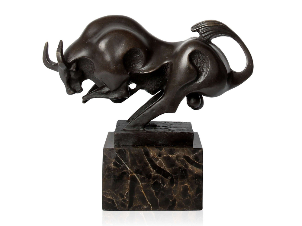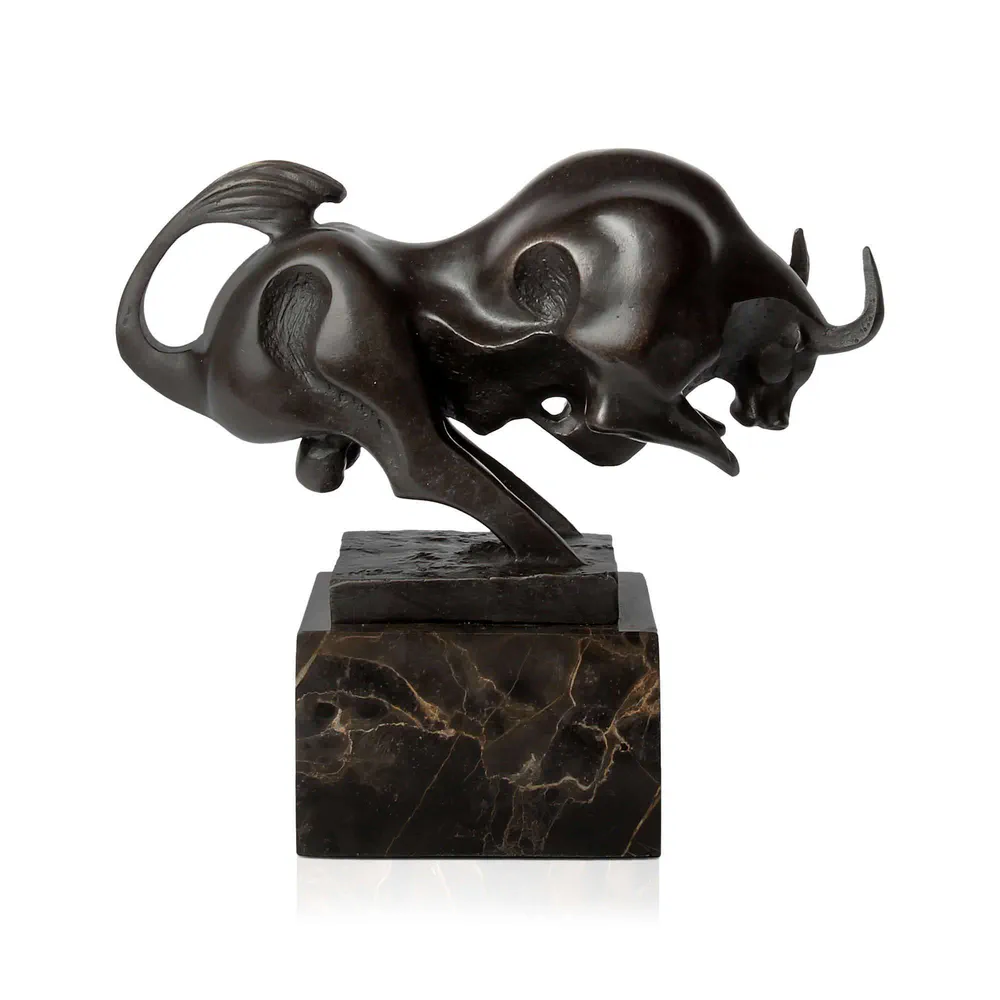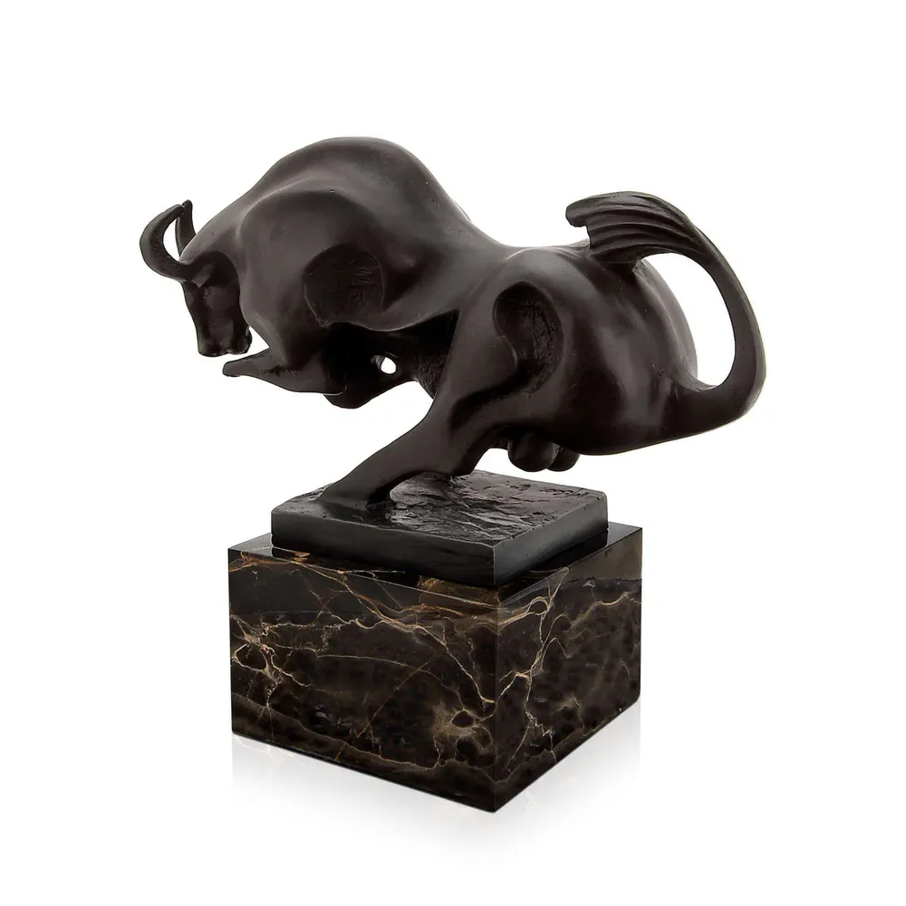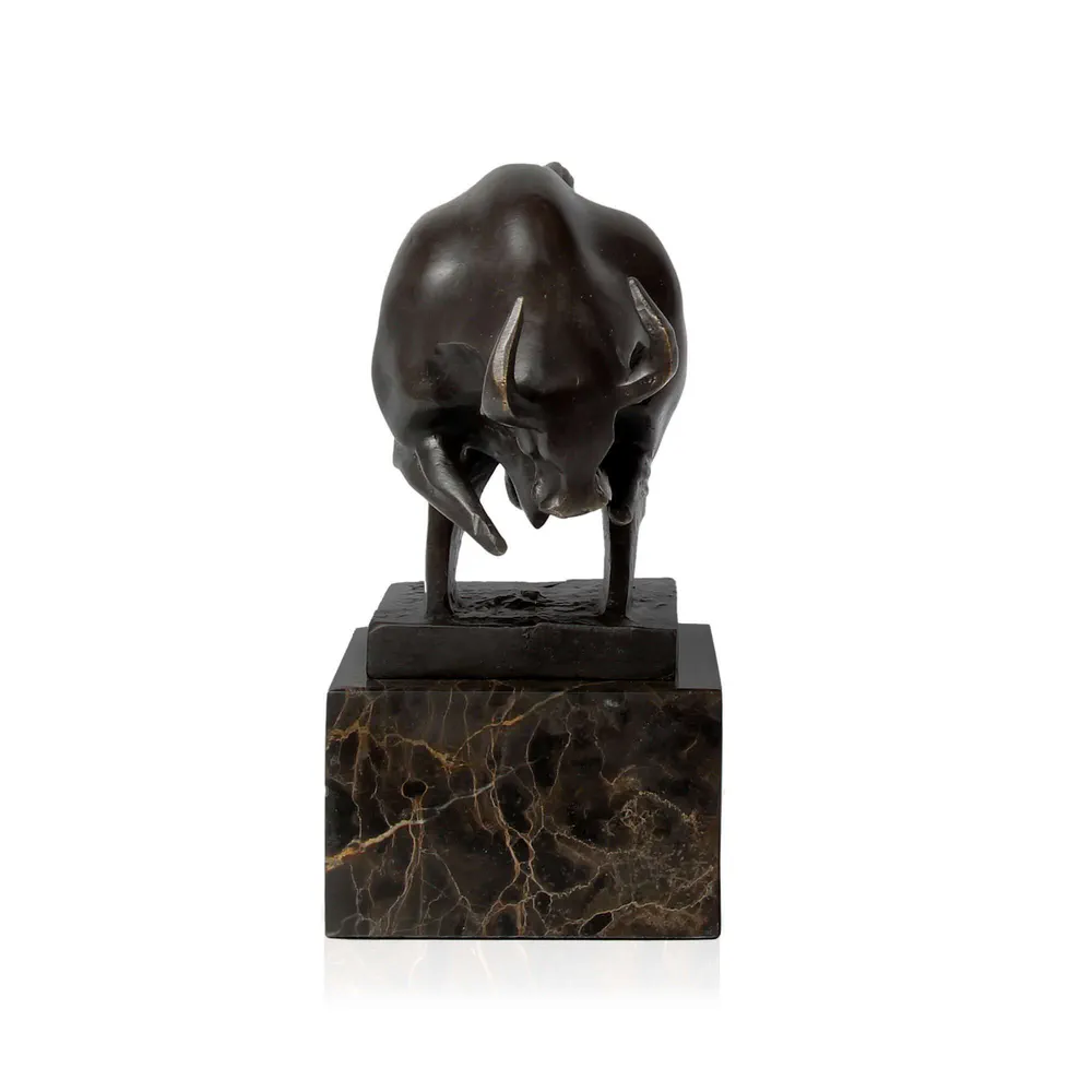 Small Bull Bronze Sculpture with Marble Base Arte dal Mondo